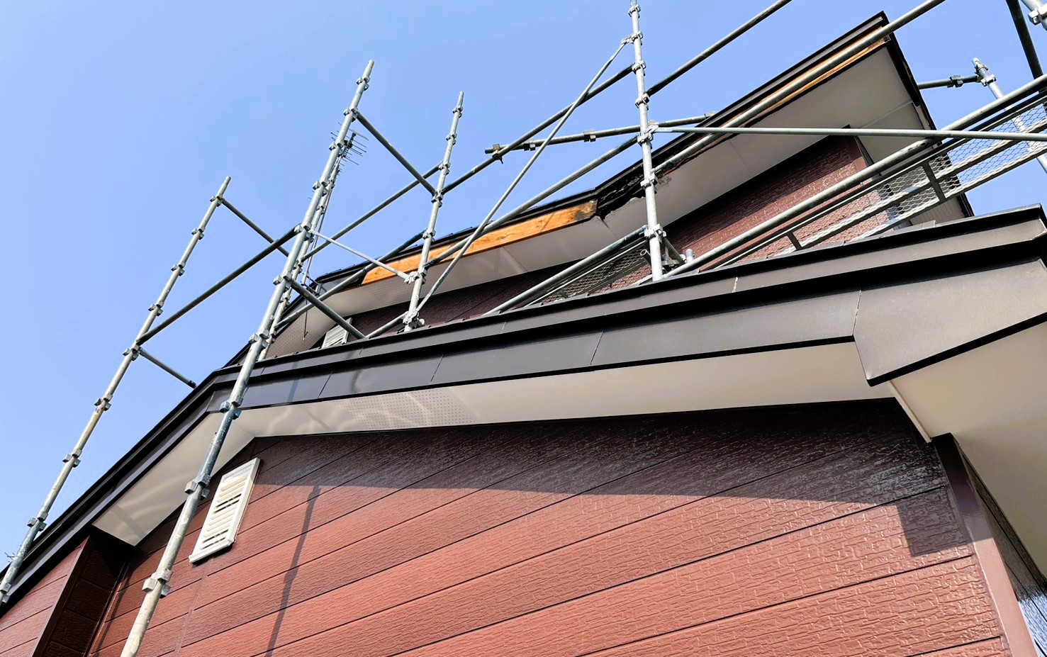 屋根・破風・軒天の修繕工事の様子です!