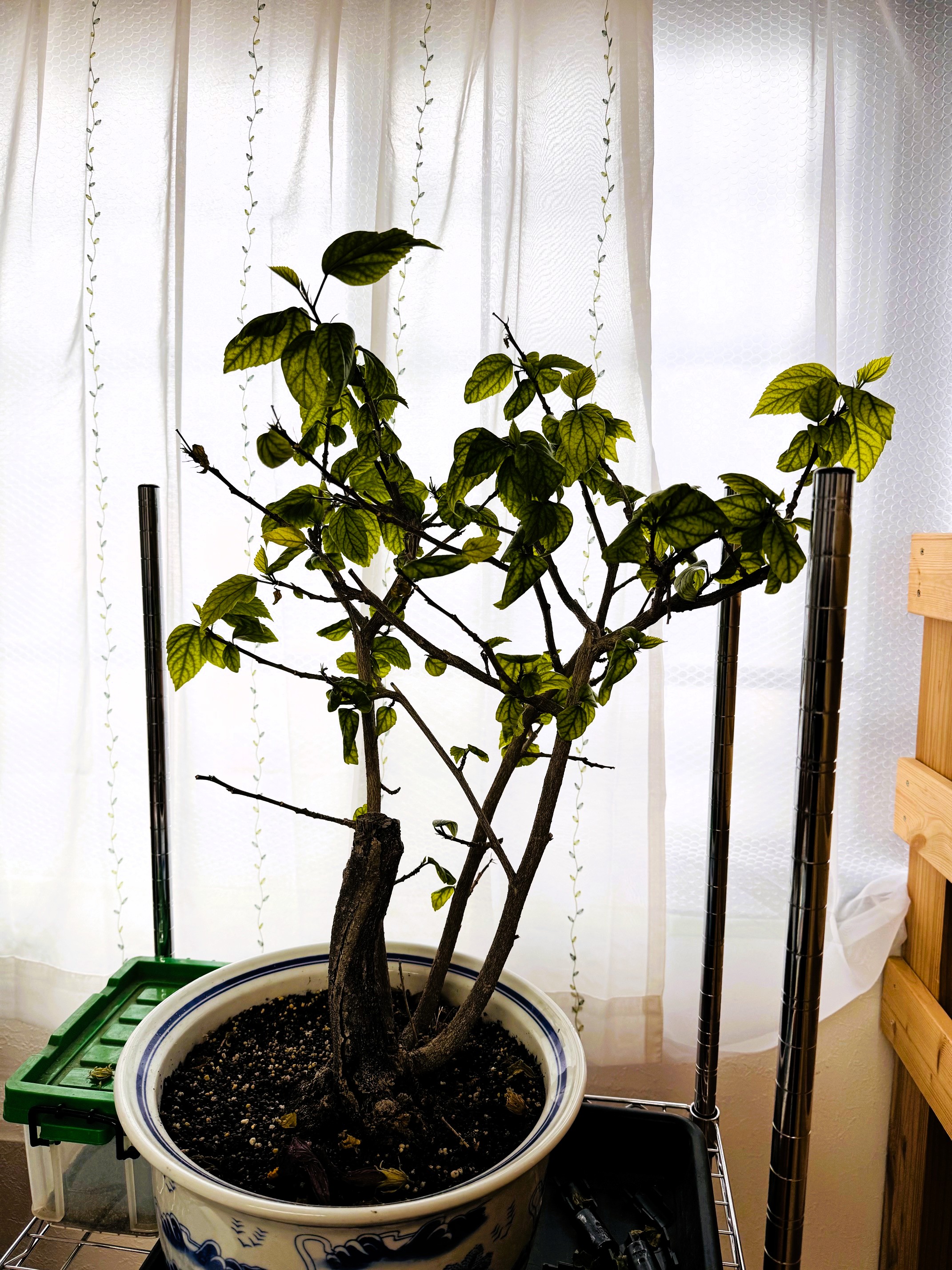 会社で育てているハイビスカス 2本あるうちの1本がずっと元気がなく